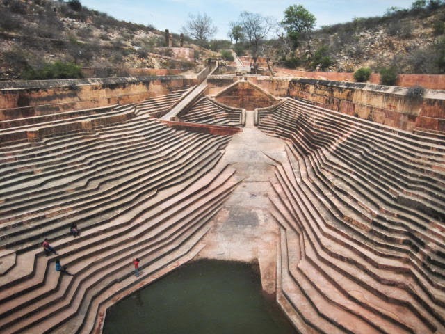 Monsoon rains in India last up to 12 weeks and fill these wells via underground aquifers. After the monsoons, the cistern** is full.