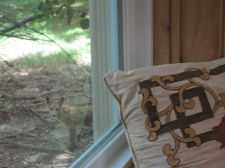 Look closely at the image above. Do you see a fox? This fox jettisoned his meekness in order to explore our backyard. Scraggly and seemingly unafraid, he entertained us for several days. His presence gave us the gift of Nature.